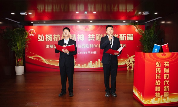 朗诵者用铿锵有力、深情动人的语言,配以音乐、视频等艺术形式,生动再现了抗战时期的艰苦卓绝和英雄壮举,深情讴歌了伟大抗战精神,充分展现了中航建设人深厚的家国情怀和昂扬的精神风貌,赢得了现场及线上观众的强烈共鸣和热烈掌声。